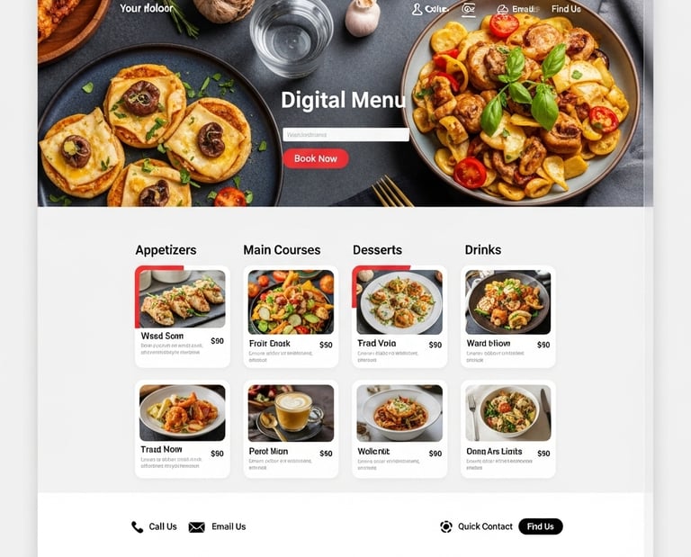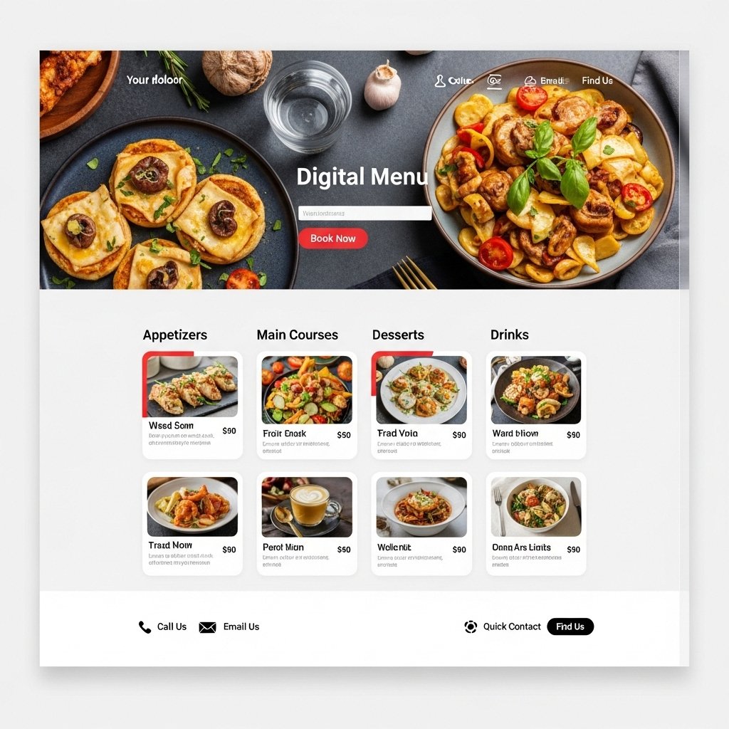Página web con menú digital, integración de reservas y botones rápidos de contacto. Fotografías optimizadas y estructura diseñada para convertir